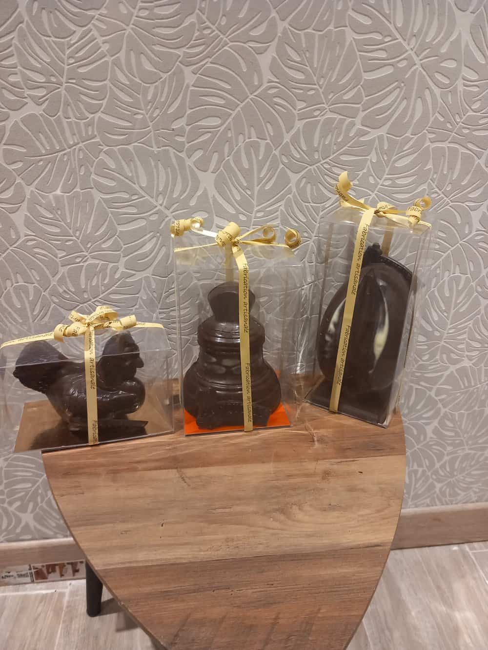Chocolela vous propose deux modèles de cloches garnies de friture, ainsi que des petites clochettes fourrées au parfum de votre choix.