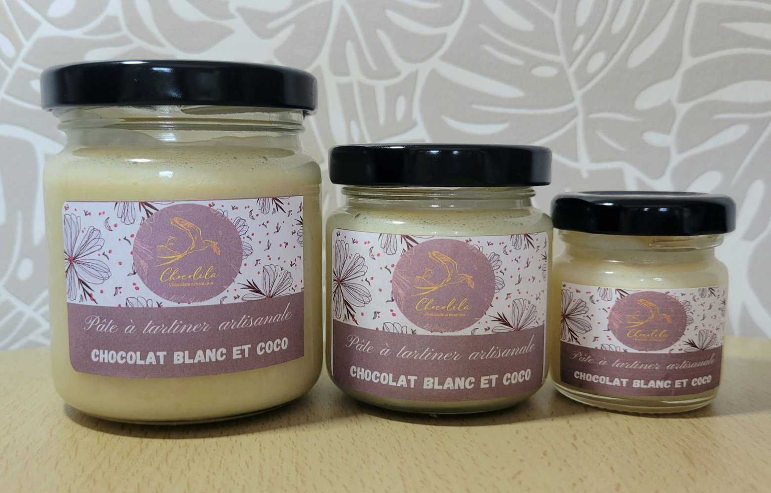 | pâte à tartiner chocolat blanc coco | 35g, 100g, 180g |